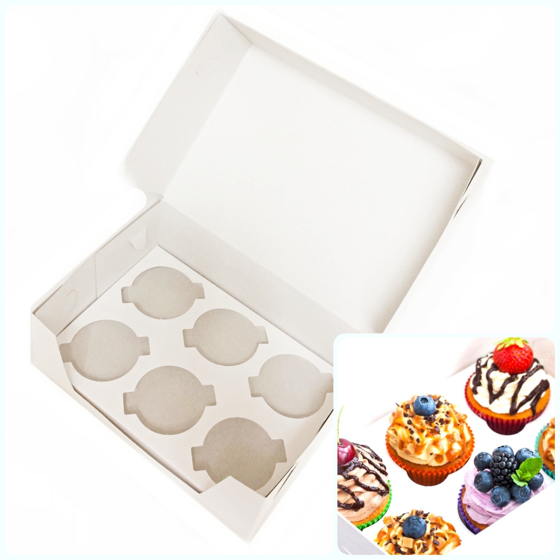 Коробка для упаковки 6 капкейков, размер 240*170*100 мм - купить в нашем интернет магазине с быстрой доставкой Почтой или СДЭК. Состоит из двух частей, коробки и вкладыша для капкейков. Упаковки по 5, 10, 25 и 50 шт. Цена указана за упаковку.