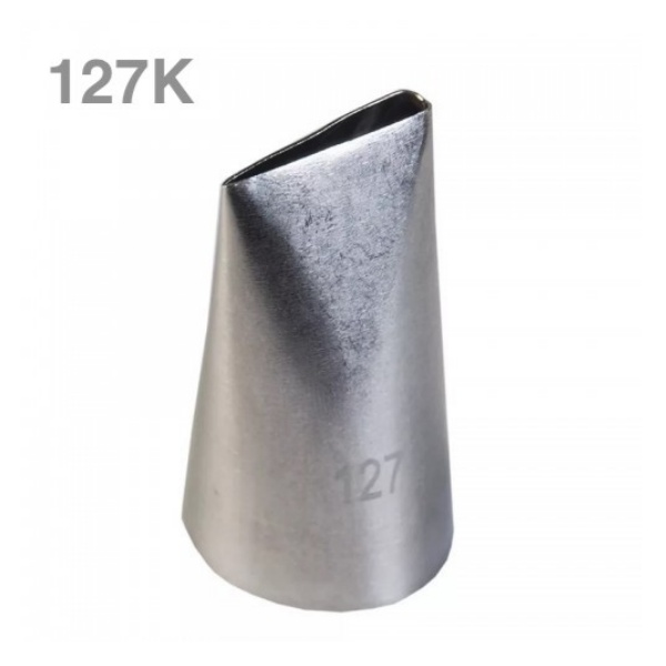 Насадка 127К - обычно используют для создания лепестков роз или других цветов, прорезь насадки скошена вниз. Подходит для любого крема и любого кондитерского мешка.